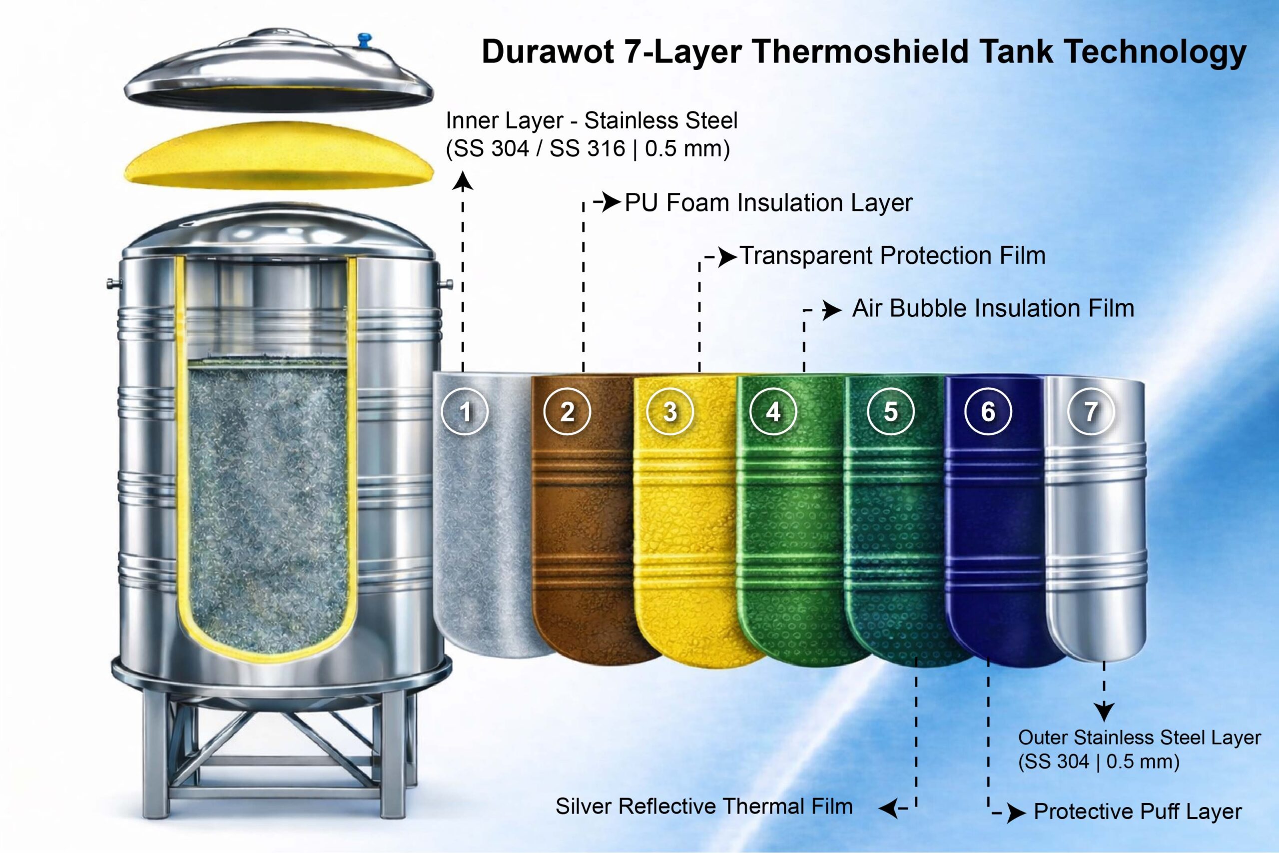 At Durawot, we follow precision manufacturing using seam and TIG welding technology, which ensures perfect joints, zero leakage, and a premium finish.